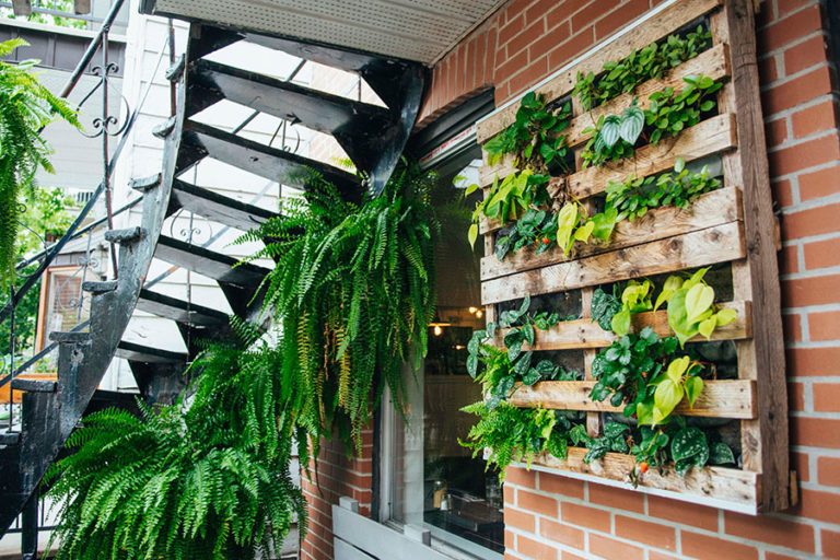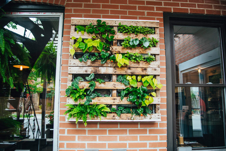 Les palettes végétales s’installent presque partout à condition d’avoir un bon support. L’alliage entre le bois et les plantes donne un design très joli. Les plantes peuvent être changées facilement. Il est aussi possible de placer les palettes sur une structure autoportante.